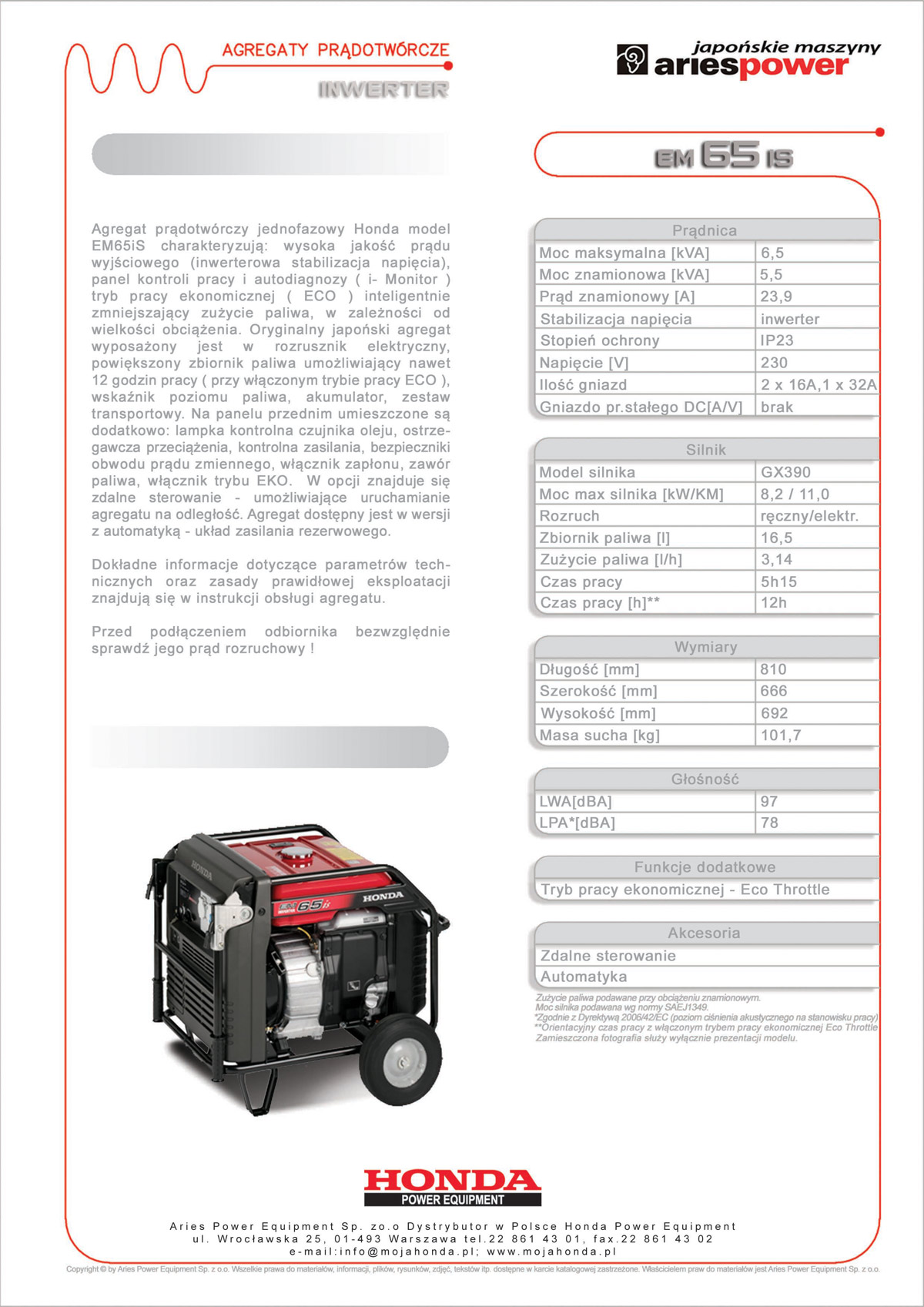 - Silnik: Honda iGX390